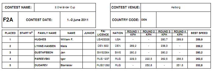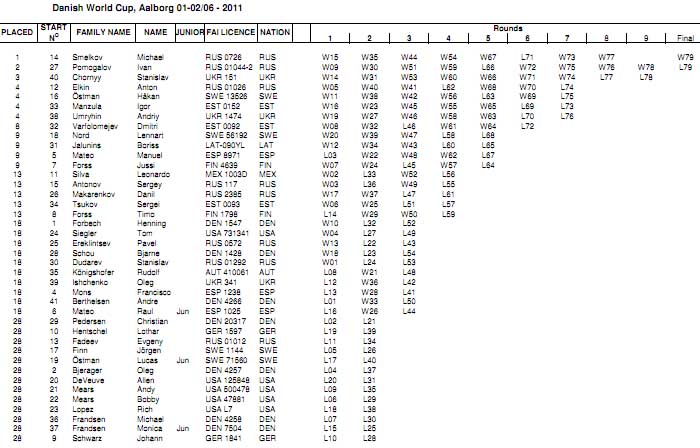 Results Danish World Cup 2011 Aalborg, Denmark Last update: 7/6 2011