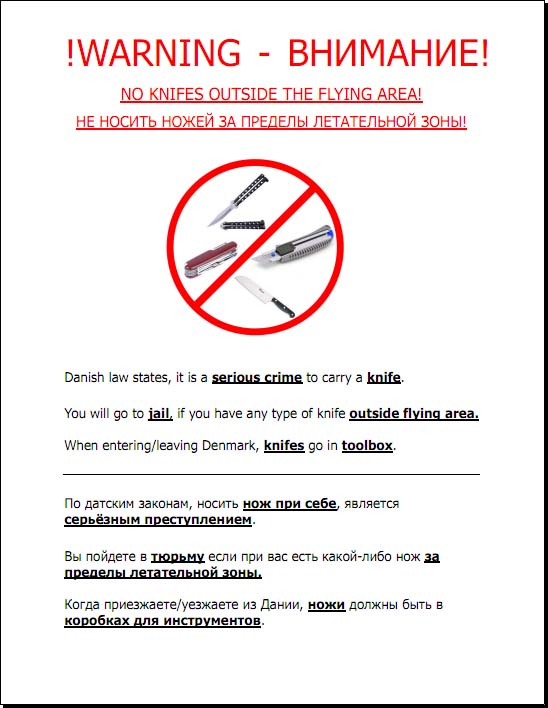 If the police stops you with a Stanley knife, outside the flying area, you go to prison!!